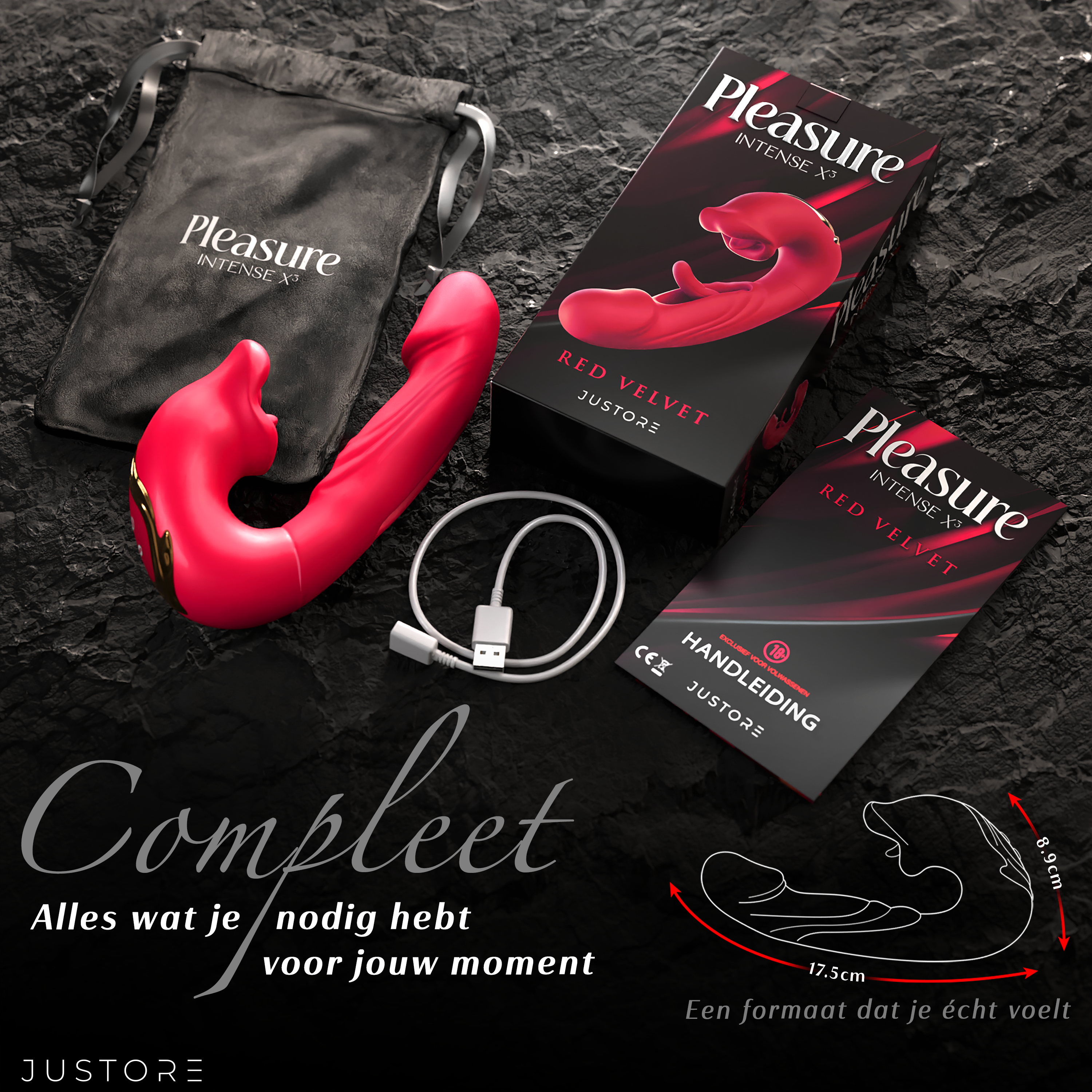 Pleasure Intense X³ wordt geleverd met alles wat je nodig hebt voor een luxe ervaring. Van de premium verpakking tot de zijdezachte opbergzak — elk detail is ontworpen om perfectie uit te stralen. Compact, ergonomisch en op maat voor jou.
